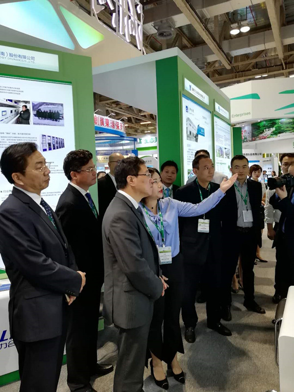 12日上午,湖南省人民政府副省长陈文浩、湖南省环保厅厅长邓力佳率湖南代表团来到了恒凯环保展位进行参观,王总和商务部部长刘赛向前来参观的领导们介绍了公司的情况、专业技术及公司发展规划和战略布局。陈文浩副省长充分肯定了我公司在环保行业做出的业绩,并希望我公司能抓住机遇,为环保行业做出更大的贡献。