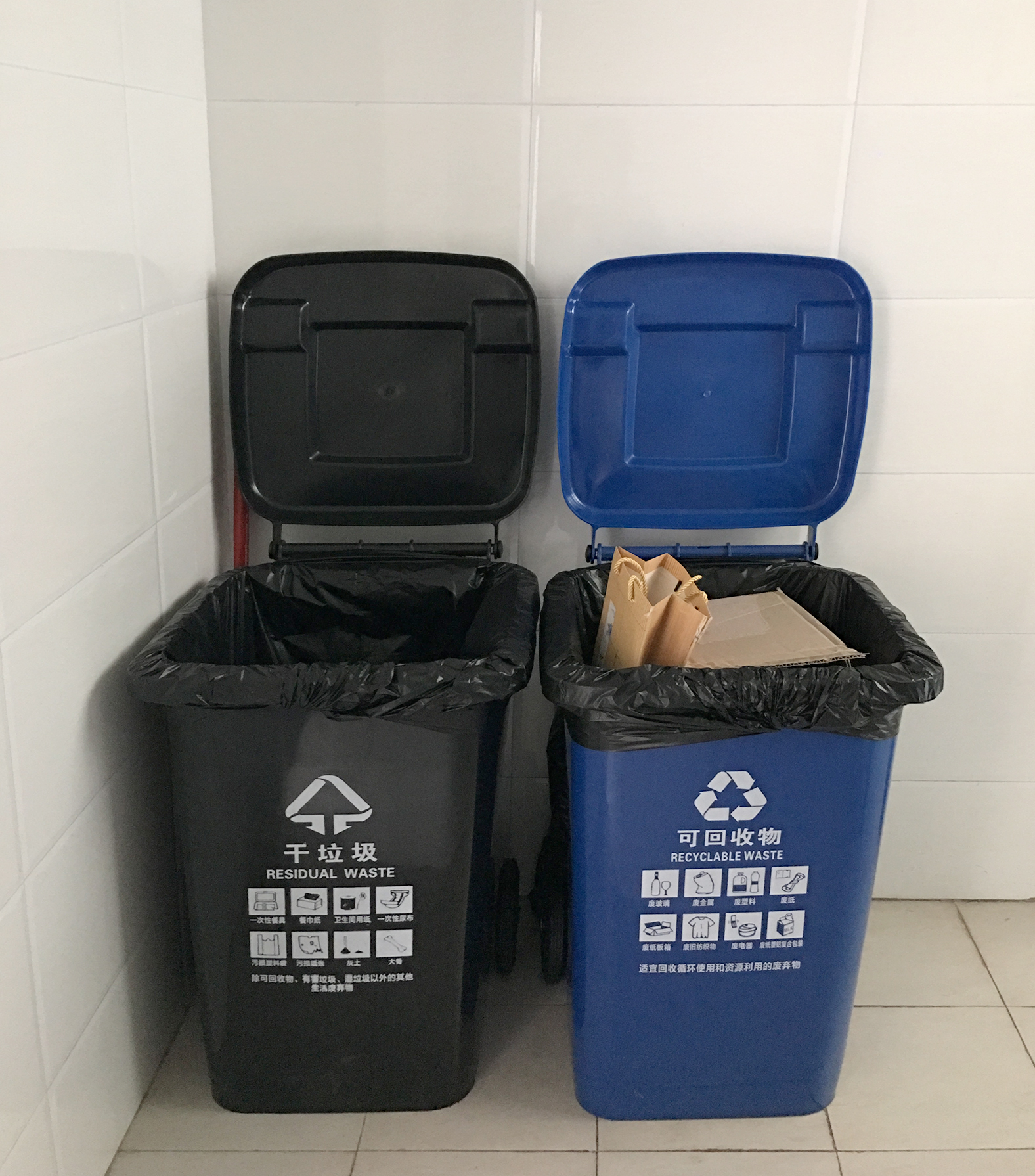 2、在园区指定位置摆放分类垃圾桶,让员工自觉参与到垃圾分类中来;