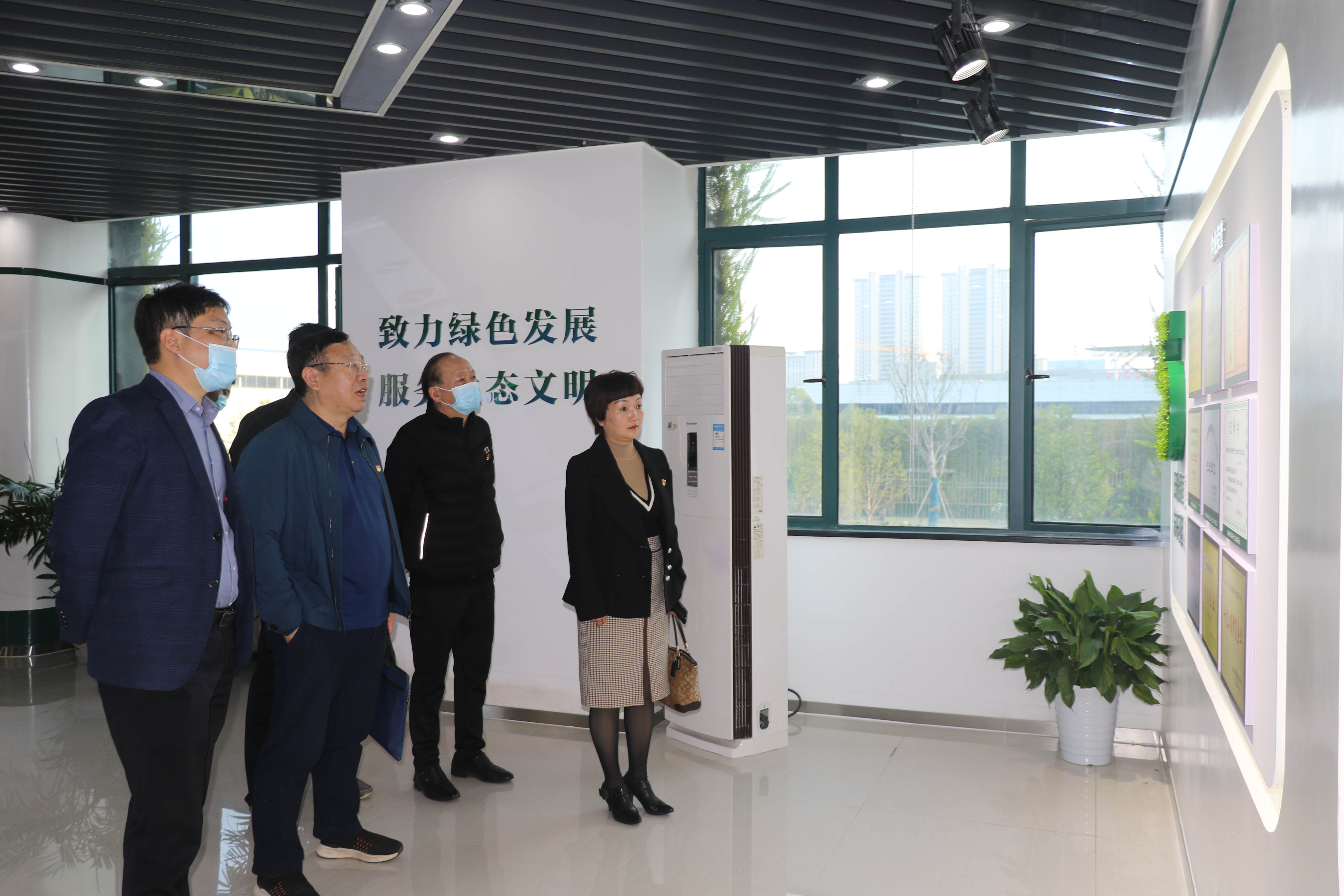 ▲ 刘书记一行参观党群活动阵地、立体生态创新建筑中心