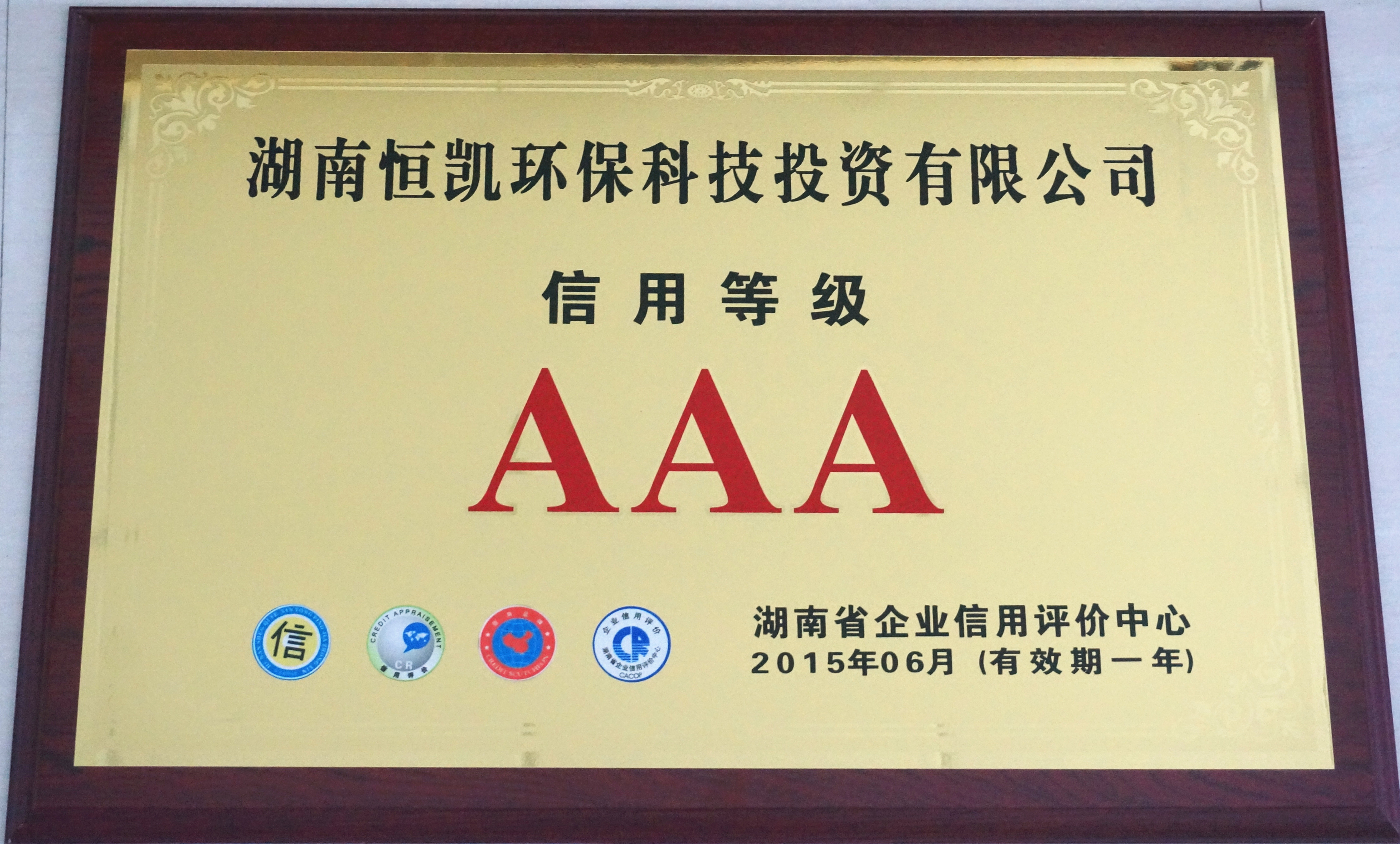 2015年6月15日,根据湖南省企业信用评价中心严格评审,我公司“湖南省信用等级AAA级企业”续评顺利通过并重新授牌。 湖南省企业信用评价中心根据我公司提供的续评材料及信用状况信息进行科学分析,并采用国际信用评级标准,对我公司进行了企业信用等级、质量信誉评级、品牌信誉评级。 据悉,3A信用等级是目前企业信用最高等级,此次“湖南省信用等级AAA级企业”称号的续评成功,表明我公司在经营管理能力、企业信用、产品质量及企业文化等方面已得到信用评级机构和社会各界的一致认可,我公司将再接再厉,大力加强质量诚信建设,带头诚信经营,引领行业健康发展!