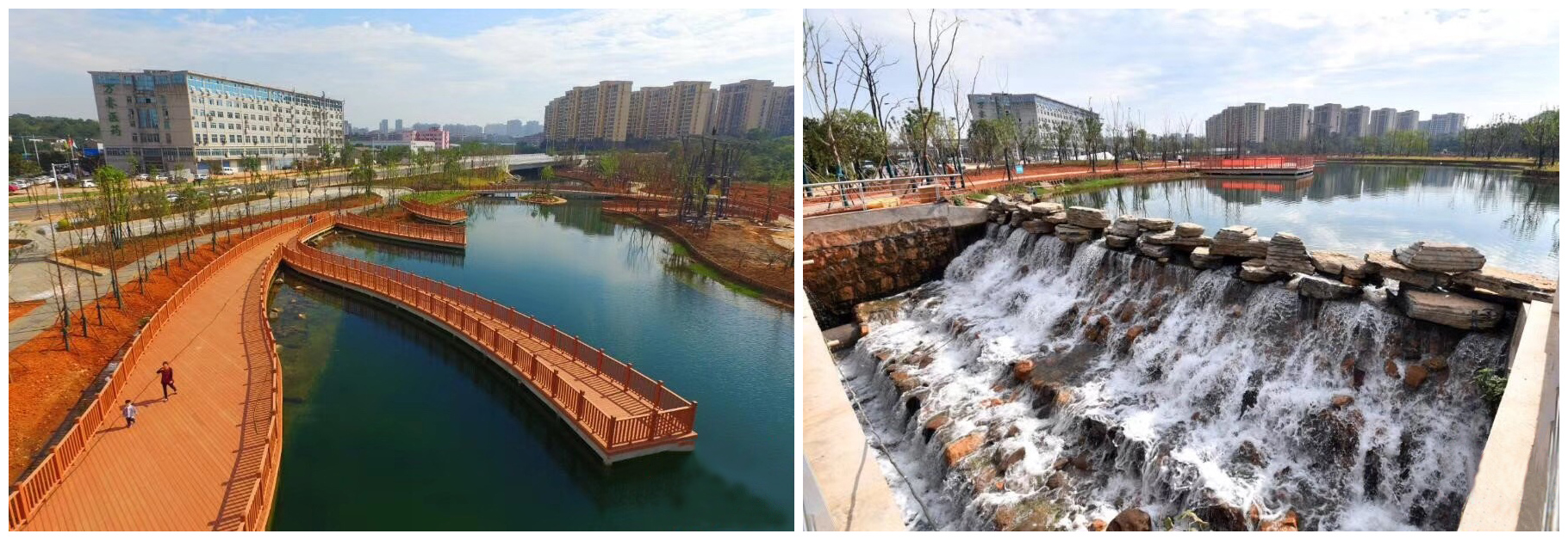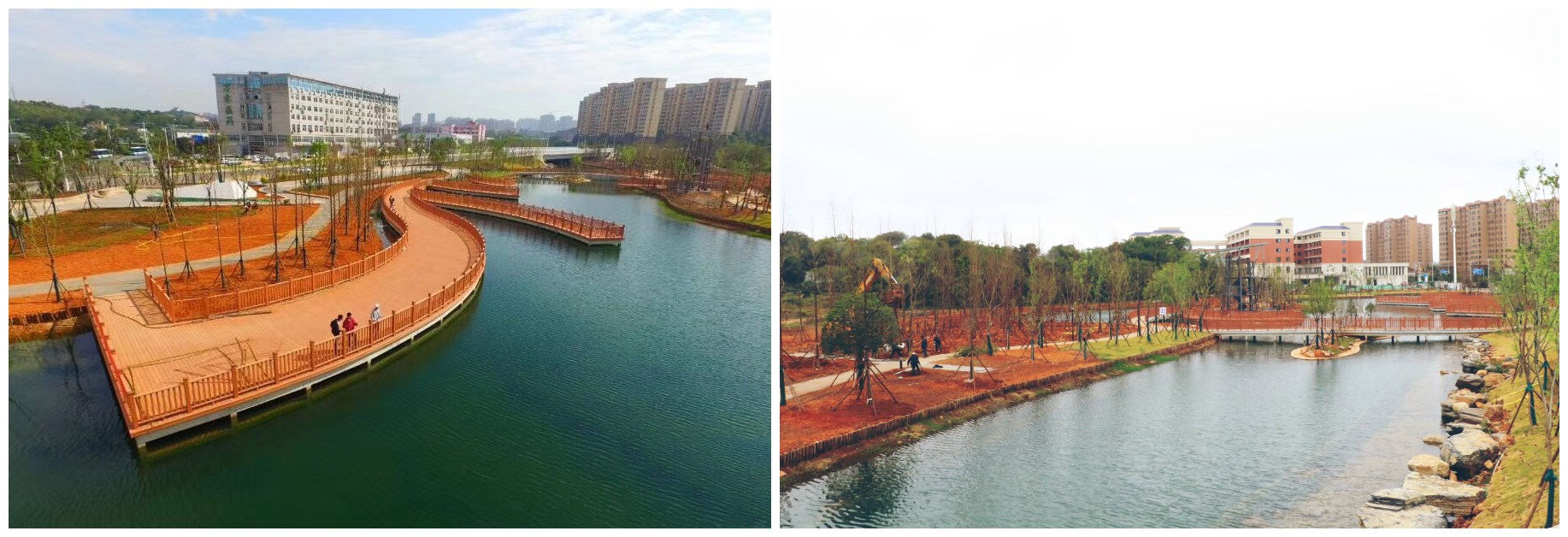 前几年受周边环境影响,港子河成了一条“臭水沟”。从去年5月开始,天心区全面启动港子河全流域景观生态带的建设工作。自2017年11月开工建设以来,恒凯环保项目团队辛苦奋战,攻坚克难,严格按照施工图纸施工,经过一年的截污纳管、河道清淤、景观示范段建设、中水补水等综合治理后,现在的港子河项目已经完成砼脚槽工程、河心岛挡墙浇捣、浆砌石挡墙、栈桥、栈道工程建设,广场、园林小品完成了工程量的95%,绿化完成70%,整个工程预计今年年底完工。