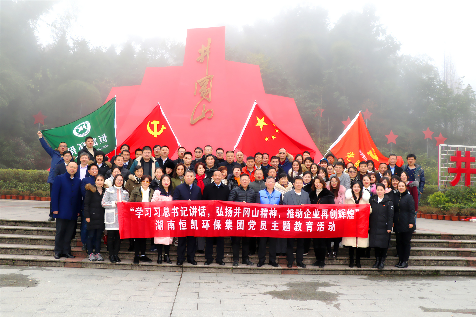 为学习习近平总书记在民营企业座谈会上的讲话精神,深入贯彻落实十九大精神,弘扬井冈山精神,以实际行动接受党的优良传统教育和红色精神洗礼,充分发挥我司党委、党支部的战斗堡垒作用和党员的先锋模范作用,12月15-16日,恒凯环保党委组织全体党员及集团各公司高管共80余人去井冈山革命老区开展了“学习习总书记讲话、弘扬井冈山精神、推动公司再创新辉煌”党员主题教育活动。