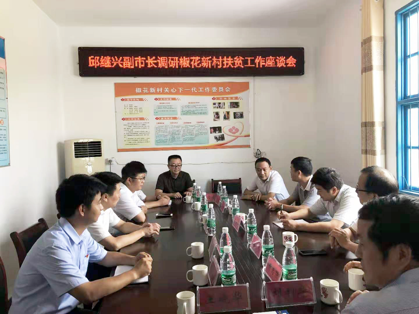在椒花村会议室,集团党委书记、副总裁王巨涛简要汇报了集团基本情况,并结合集团和椒花村的实际情况提出资金扶贫、产业扶贫、就业扶贫、教育扶贫、基础建设扶贫等多形式结合的扶贫理念,强调措施落在实处,做到帮扶对象精准,帮扶内容精准,帮扶方式精准,帮扶成效精准;长沙市副市长、椒花村精准扶贫联点领导邱继兴对我集团积极参与精准扶贫工作的态度及精准扶贫措施给予了高度的赞扬和肯定,并对精准扶贫工作提出了希望和要求。