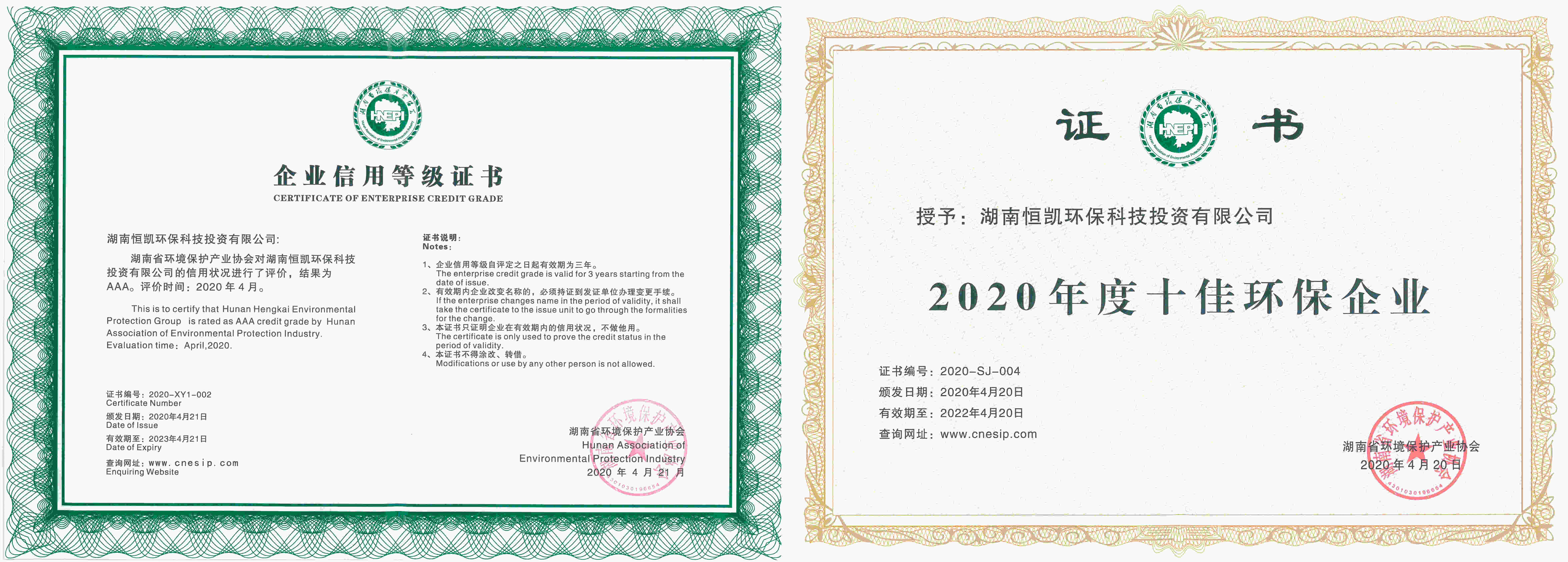 恒凯环保荣获湖南省环境保护产业十佳企业等四项省级荣誉