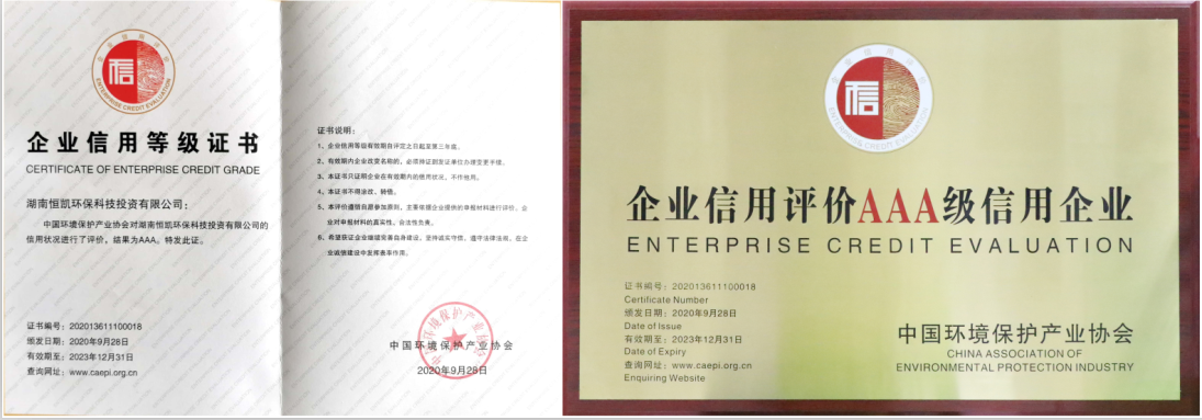 近日,中国环境保护产业协会公布了第十三批中国环境保护产业行业企业信用等级评价结果,经过层层评定,恒凯环保在258家入选评审单位中脱颖而出,成功获评中国环境保护产业行业企业信用最高等级3A级。此次公布的结果显示,本次评选湖南仅有三家环保企业获得3A信用等级评价。